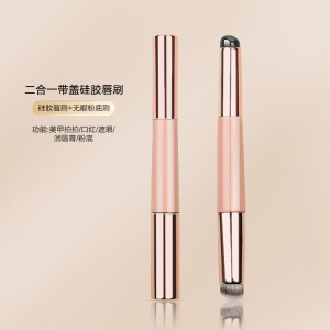 双头带盖硅胶唇刷二合一多功能口红遮瑕刷带盖圆头化妆刷美妆工具