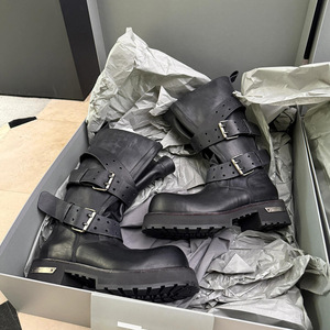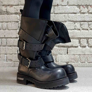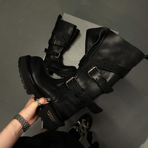 Bajia レトロベルトバックルヴェノムブーツ 2025 夏の新スタイルの大きなチューブ厚底高さを高めるパンクオートバイブーツ