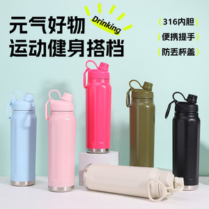 跨境新款运动水壶304不锈钢保温杯骑行水壶户外手提便携菱形水杯