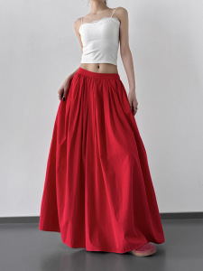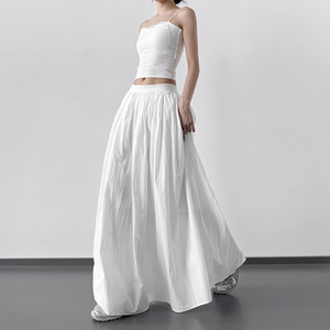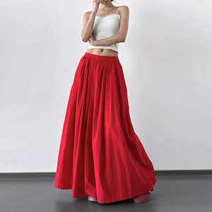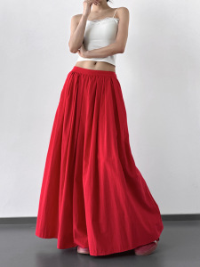 2025 新しい夏スタイル超見栄えの良いファッショナブルな薄い弾性ウエストスカート女性のハイウエスト痩身 A ライン大裾傘スカート