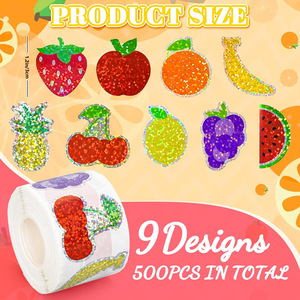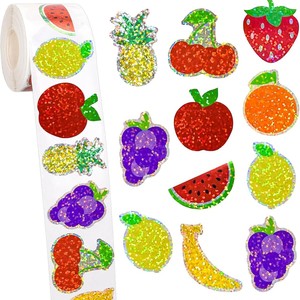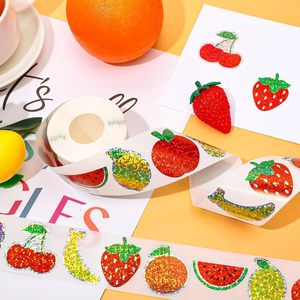 500 個夏のフルーツステッカーロールレーザーアップルレモンイチゴシールステッカー防水自己粘着ステッカー DIY