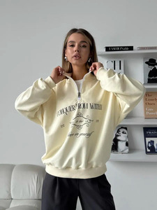 2025 秋と冬のファッション気質スポーツスタイルニッチラペルハーフジッパーレタープリント厚みのあるパーソナライズされた女性のトップ