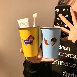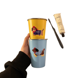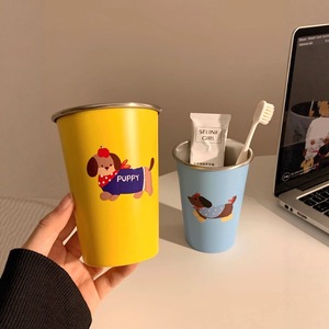 かわいい子犬 304 ステンレス鋼マウスウォッシュカップ家庭用歯ブラシカップ子供の見栄えの良い寮ウォッシュカップカップル