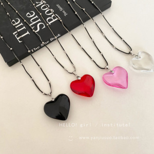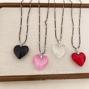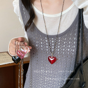 韩系ins透亮爱心吊坠项链女2025新款轻奢小众长款毛衣链挂脖配饰