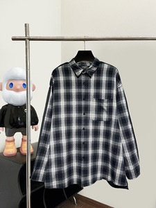 パリの正しいバージョン B チェック柄の前後生地を組み合わせたハーフリングシャツ B トレンドのハイバージョン長袖シャツ