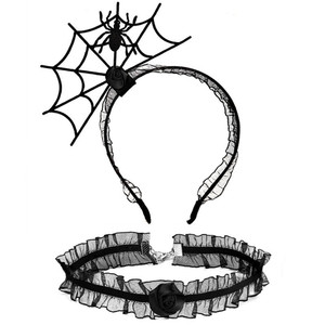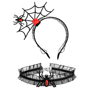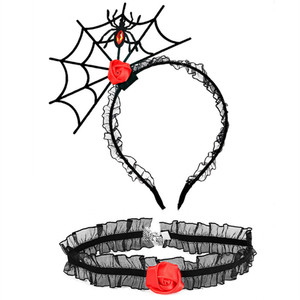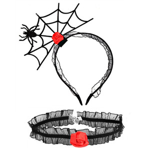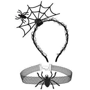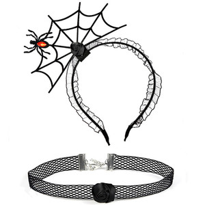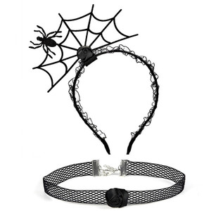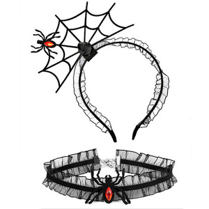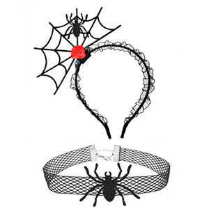 ハロウィンのお祭りの雰囲気の小道具ヘアピンインターネット有名人の写真の小道具ヘアフープ首輪セットクモの巣ヘッドバンドパーティー