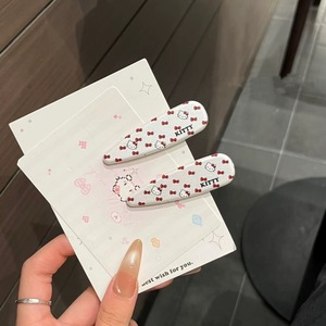 可爱甜美珍珠白KT猫椭圆发夹卡通少女刘海侧边夹百搭发卡发饰日韩