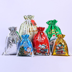 新款3D抽绳礼物袋圣诞派对铝箔糖果袋新年创意礼物包装袋