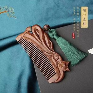 黑金檀九尾狐双面雕花梳 14cm不带流
