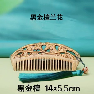 黑金檀兰花双面雕花梳 14cm不带流