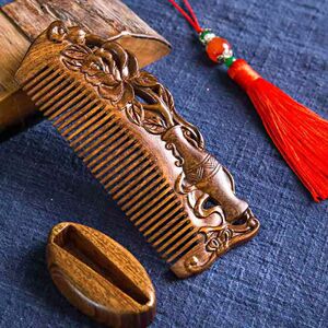黑金檀富贵平安双面雕花梳14cm不带流苏
