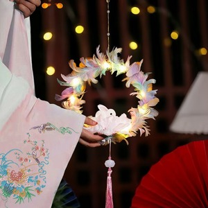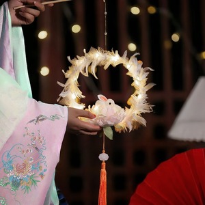 アンティークフラワーランタン卸売手作り翡翠ウサギ新しいウサギポータブル子供用ランタン装飾発光完成品材料屋台