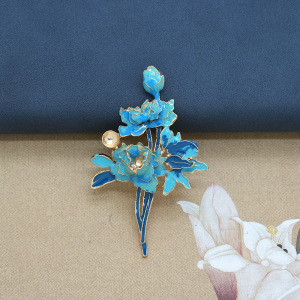 国风珠托荷叶莲花胸针女高级感高端小众金鱼别针胸花女复古配饰
