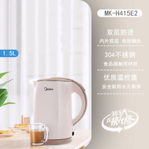 美的电热水壶家用304不锈钢双层防烫自动断电1.5L MK-H415E2J
