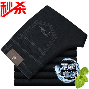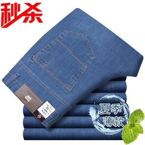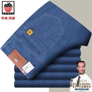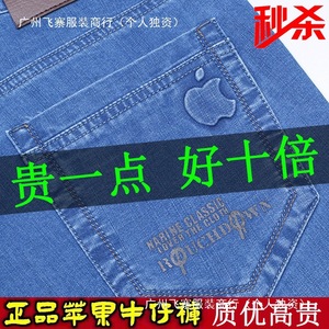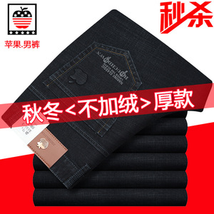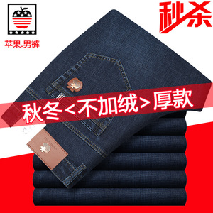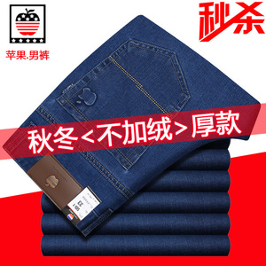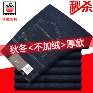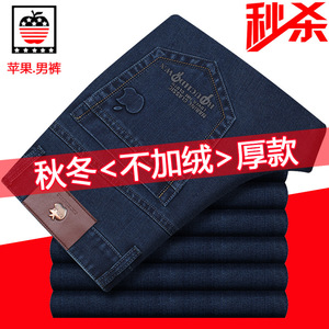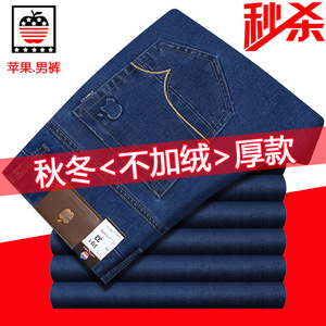 捡漏抢苹果弹力牛仔裤男士春秋厚款宽松休闲裤直筒高腰中老年长裤