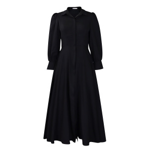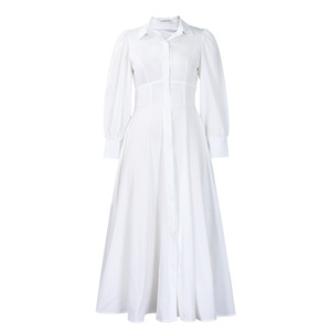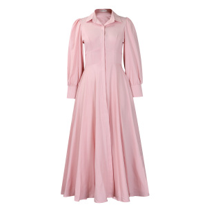 D570 クロスボーダー婦人服エレガントな長袖ビッグスイングシャツドレスファッショナブルなソリッドカラーミッドレングスアフリカドレス
