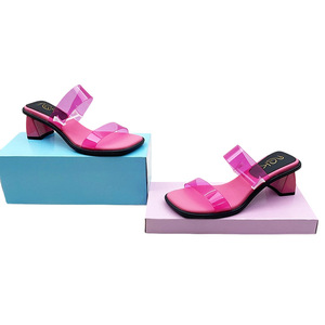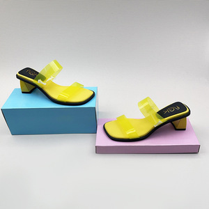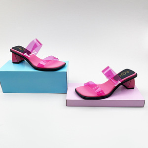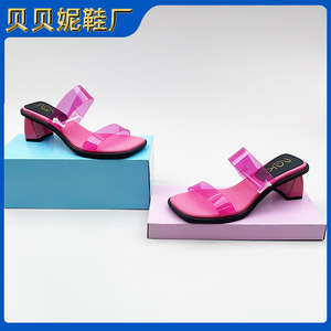 跨境时尚风格高跟拖鞋女夏透明纯色百搭减龄气质洋气女士厚跟大码
