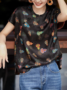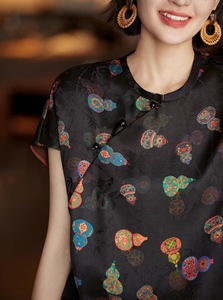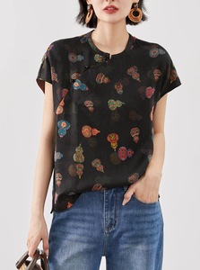 宝葫藏珍•东方丝韵葫芦印花国风上衣夏季新款衬衫女