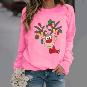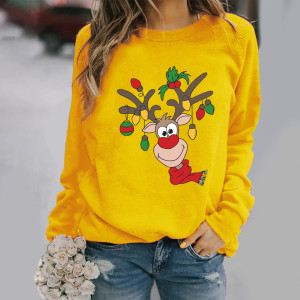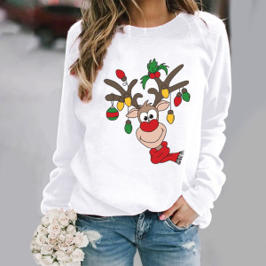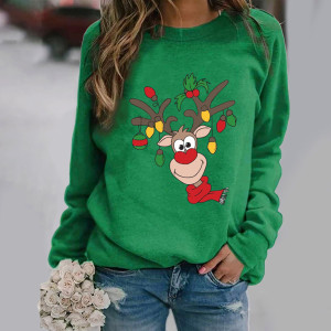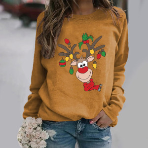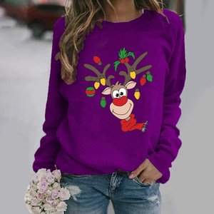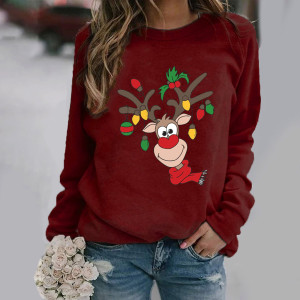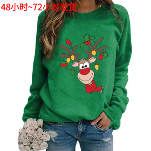 ヨーロッパとアメリカのクロスボーダー Amazon wish 独立したウェブサイト クリスマス柄プリント 長袖 ラウンドネック スウェットシャツ レディース