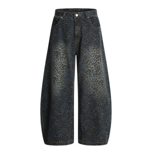 ヨーロッパとアメリカのヒップホップメンズジーンズメンズダメージ加工ダーティヒョウ柄スモールソードパンツトレンディなブランドルーズ新しいボーイズパンツ