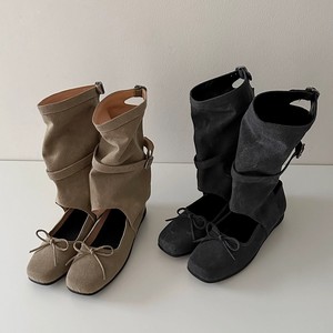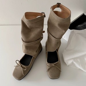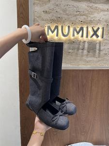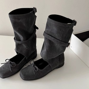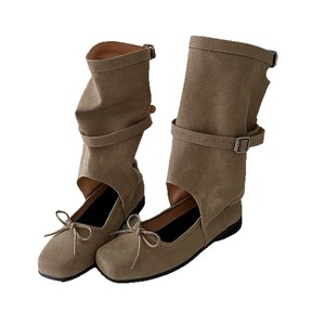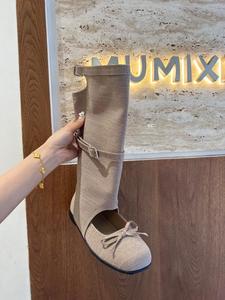 牛皮版~韩版磨砂皮褶皱堆堆靴2025小众芭蕾风蝴蝶结镂空时装凉靴