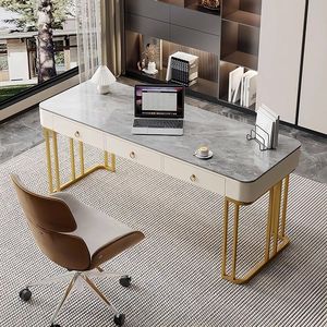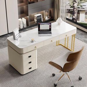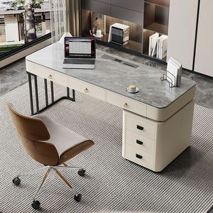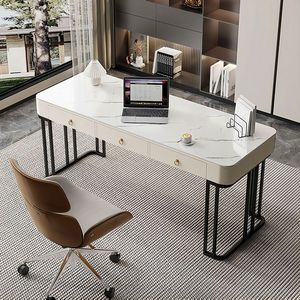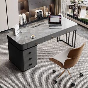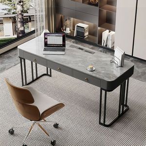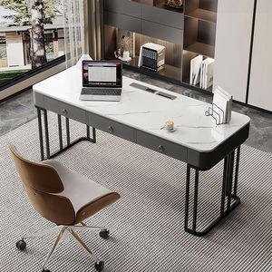 现代家用电脑桌美容院洽谈接待桌咨询桌办公桌意式轻奢岩板书桌