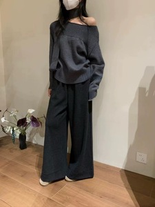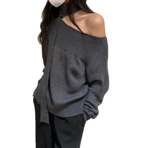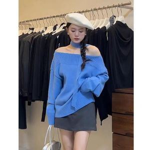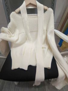 2025跨境秋冬新款欧美优质毛衣女露肩一字领两件套围领韩系针织衫