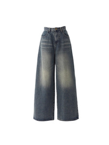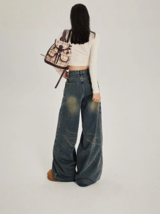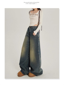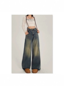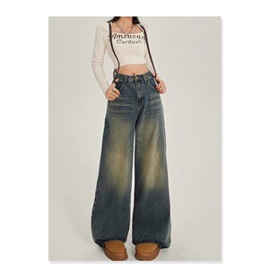 レトロなダメージ加工ハイウエストストレートパンツトレンディなアメリカンノスタルジックなワイドレッグジーンズ女性の秋冬の新しいスタイル