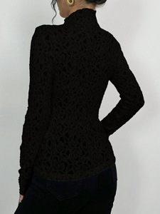 欧美跨境女装木耳边半高领蕾丝修身长袖T恤上衣外贸亚马逊temu