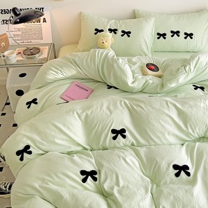 新款水洗棉毛巾绣四件套蝴蝶结学生宿舍三件套床单被套床上四件套