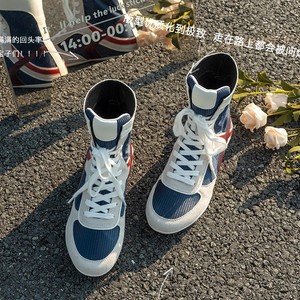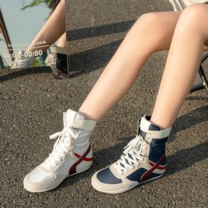 牛皮版~2025内增高拳击运动鞋女圆头休闲高帮德训鞋系带马丁靴女