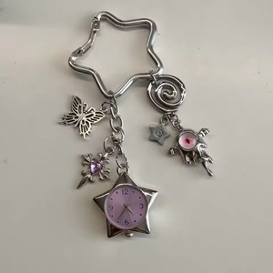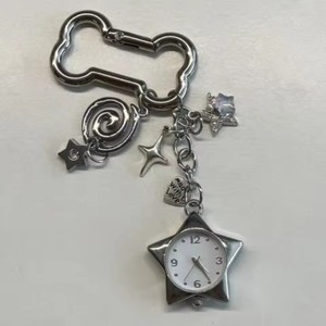 時計ヘッドペンダント〜サブカルチャーニッチデザインラブロック四つ葉のクローバースターテーブルチタン鋼ペンダントバッグ吊り装飾