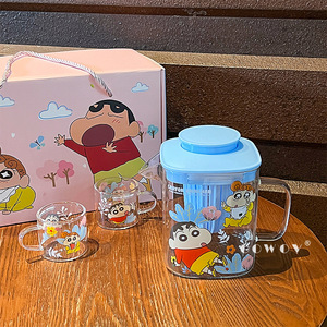 クレヨンしんちゃん ジョイントガラス コールドケトル ティーポット カップセット 家庭用ウォーターカップ コールドケトル 誕生日プレゼント
