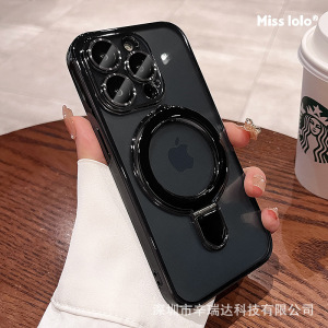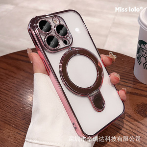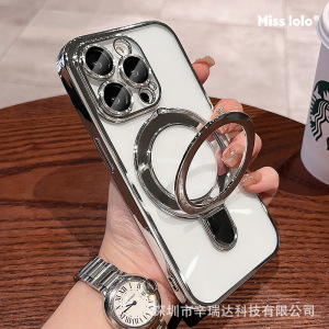 适用iPhone16ProMax手机壳电镀磁吸支点支架苹果15透明防摔保护套