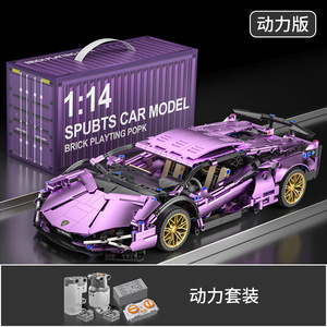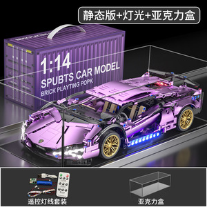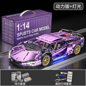 レゴランボルギーニ電気メッキシルバーカウパープルカウリモートコントロールスポーツカー男の子組み立てビルディングブロックおもちゃギフトクロスボーダー配送と互換性があります