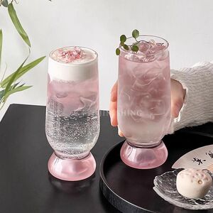 小众粉色观山杯玻璃杯高颜值鸡尾酒杯茶杯气泡杯果汁杯创意水杯子