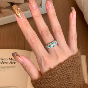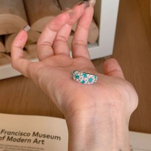 女性用フルダイヤモンドミントグリーンリング、軽くて豪華なニッチデザイン、ハイエンドのジルコン気質、絶妙な人差し指リング、オープンリング