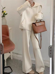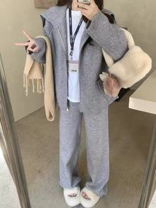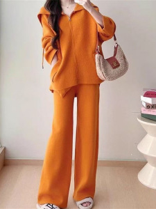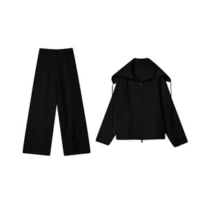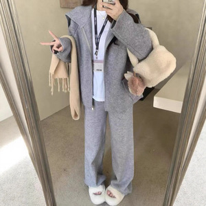 韓国風レイジースタイルスーツレディース新作ドレープワイドパンツootb着用セット高級ラペルセータージャケット