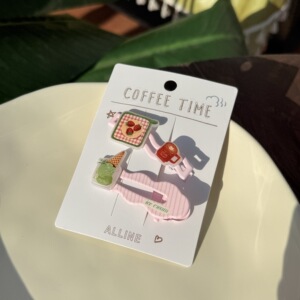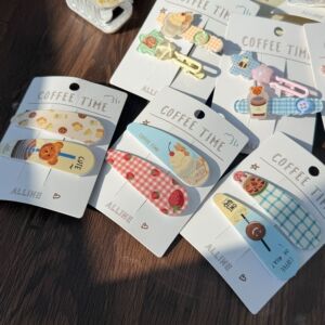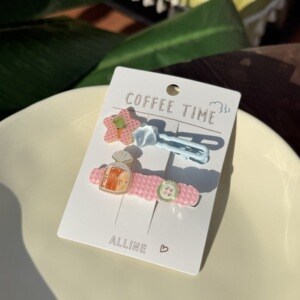 Alline 新しいストロベリーアイスクリームチェック柄スタースクエアアヒルクリップ甘いシームレスクリップガールヘアクリップグリッパー