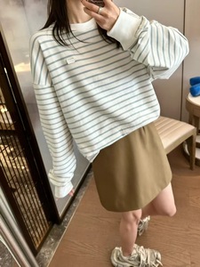 ader潮牌春秋条纹圆领宽松休闲百搭慵懒风打底衫复古男女同款长袖