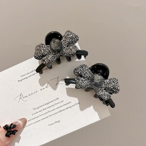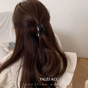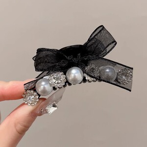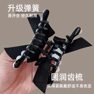 2025新款公主风黑色迷你蝴蝶结发夹复古碎发刘海夹前额小抓夹女