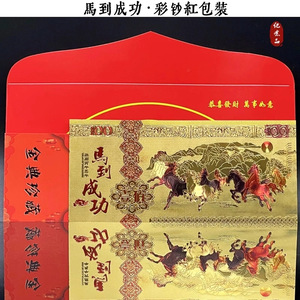 2026年馬年金紙幣赤い封筒、成功をもたらす新年のお金、模造金箔百元馬紙幣記念コレクションイベントギフト