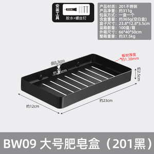 304不锈钢浴室黑色肥皂盒碟置物架 厕所淋浴卫生间收纳壁挂收纳架