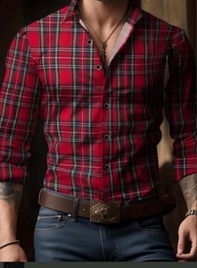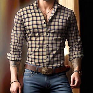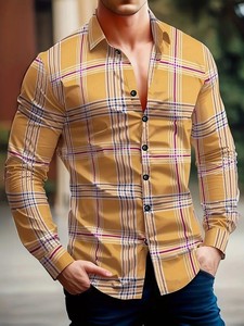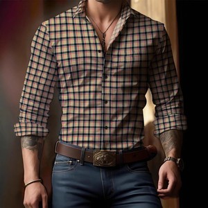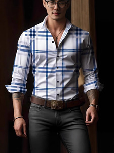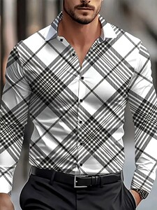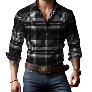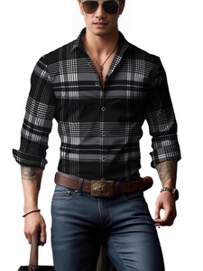 2025年新款欧美跨境亚马逊独立站3D数码印花条纹格子男士长袖衬衫