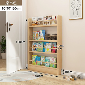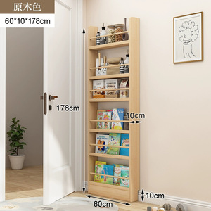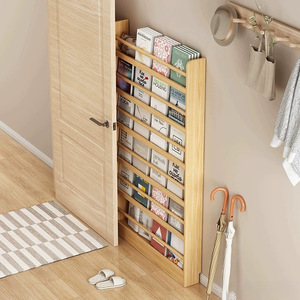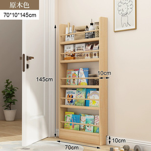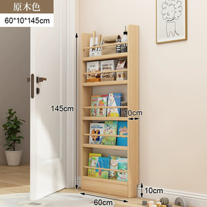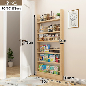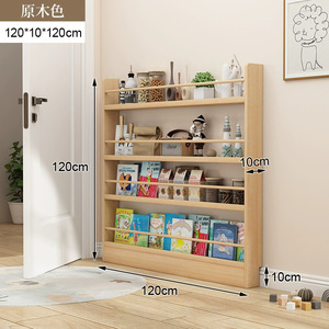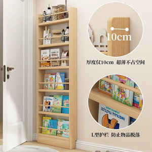实木超窄夹缝置物架窄柜走廊玄关书架薄款免打孔绘本架门后收纳架