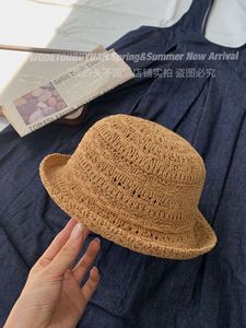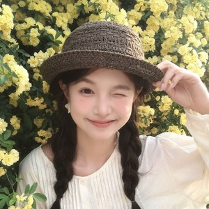 韩国订单『高品质』卷边纯色圆顶礼帽子夏季镂空透气遮阳显脸小渔