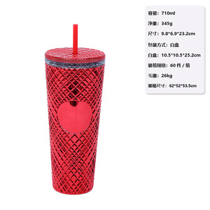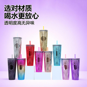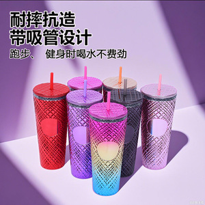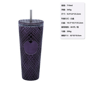 Amazon工場直送710ml大容量ウォーターカップ不規則なグリッドテーパープラスチックカップインターネットセレブストローカップ