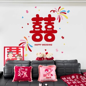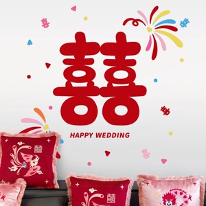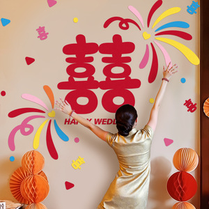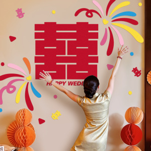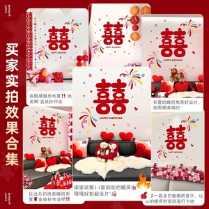 多巴胺婚礼婚房布置套装结婚布置婚房装饰婚礼喜字拍照背景墙布置