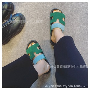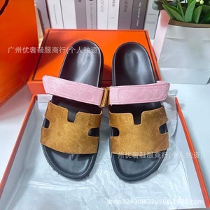 高版本2025年夏新款跨境二舅拖女厚底拖鞋魔术贴外贸大码轻奢女鞋
