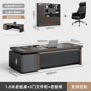 1.8米双柜老板桌+老板椅+五门书柜(升级烤漆款)